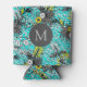 Modern Abstract Exotic Floral Art Monogram Can Cooler