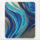 Modern Abstract Flow Art- Blue and Gold- Mouse Pad