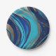 Modern Abstract Flow Art-Blue and Gold- Paper Plate