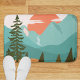 Modern Abstract Forest, Mountains, and Sunrise Bath Mat