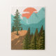 Modern Abstract Forest, Mountains, and Sunrise Jigsaw Puzzle