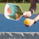 Introducing our Modern Abstract Forest, Mountains, and Sunrise Pickleball Paddle. Featuring nature landscape illustration in vintage style. Suitable for as a gift for pickleball enthusiasts.