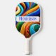 Modern Abstract Fun Rainbow Colour Swirls Monogram Pickleball Paddle