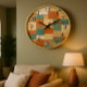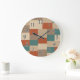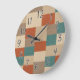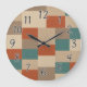 Modern Abstract Geometric Block in Teal & Beige Large Clock