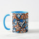 This is a Habatour Creations authentic coffee mug, adorned with an modern abstract geometric digital pattern design with shapes that reminiscent of optical illusions