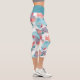 Fun cropped workout tights or Capri performance leggings for women. With classy, fun and contemporary pastel turquoise, teal blue, coral orange, light violet purple, and taupe brown coloured abstract geometric triangles, polka dots and half circles mosaic pattern design on a white background. Stylish original and cool cover for the trend-savvy and art-loving hip trendsetter, trendy look style motif lover. Show off your unique and personal style when you work out at the gym, relax and exercise at yoga class, or are jogging or running. Look cute and hip while being active and staying fit while wearing these cool yoga pants!