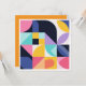 The design highlights a modern minimalist graphic design approach, with clean lines and structured patterns balanced by playful bursts of color. Circles, triangles, squares, and abstract forms overlap and intersect, creating a sense of movement and rhythm across the card. The arrangement feels dynamic yet refined, embodying a trendy hipster artsy artistic style that appeals to those who appreciate modern abstract expression.