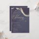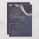 Abstract dark midnight navy blue and gold painterly wedding invitation.