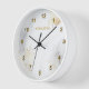 Modern Abstract Gold Floral on White Marble Clock