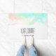 A welcome doormat with an abstract border along the top with green and blue swirly colours. A soft and summery design.