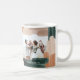 Modern abstract green, terracotta and natural multi photo Christmas painted script text merry everything holiday decor mug design.