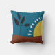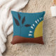 Modern blue trendy throw pillow with colourful abstract illustration of a landscape with a sun, for home , living room, office decoration. Blue brown yellow bold colours for this modern minimalist throw pillow. Simple bold landscape with sun, hills, tree. Trendy simple design with bold colours for women birthday gift, friends, mothers, wifes, new owners.