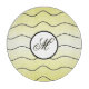 Soft butter yellow tones with modern, black abstract line art accentuate the black and white centerpiece with the personalised family / surname initial in black calligraphy. And, with the subtle matching yellow drop shadow on the initial, this is a unique 12" tempered glass cutting board that makes a wonderful and useful gift for families and new homeowners!