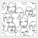 A unique design featuring abstract lines that create different faces with one continuous line. A beautiful abstract modern on line sketch of female faces. A stylish design with minimal, contemporary and trendy portraits of faces in black and white.