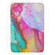 A bathmat with a fancy artistic abstract design. Watercolor painting with the colours mixing and mingling creating a nice flowing marbled pattern.