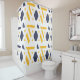 Modern, abstract, navy blue, yellow, white pattern shower curtain