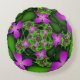 Modern Abstract Neon Pink Green Fractal Flowers Round Cushion