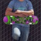 Modern Abstract Neon Pink Green Fractal Flowers Skateboard