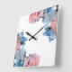 Modern Abstract Paint Splash Inks Blue Pink Square Wall Clock