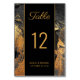 Elegant sophisticated acrylic painting wedding table card in dark grey, yellow gold glitter, and black colour palette with abstract brushstrokes and faux gold modern contemporary fully editable typography script. ++++++++++ The card is suitable for all seasons trendy urban chic style glamourous wedding receptions