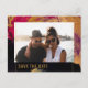 Modern abstract painting gold script photo wedding announcement postcard