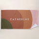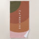 Make a statement at the beach or pool with this modern abstract personalised towel featuring warm terracotta, blush pink, and olive green geometric shapes. The clean minimalist design and bold name lettering create a chic, custom look perfect for any summer adventure.