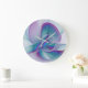 Modern Abstract Pink Blue Turquoise Fractal Art Large Clock