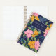Beautiful floral notebook that will be a joy to use for your daily journaling, sketches, to do lists, thoughts and ideas or whatever you want to use your pretty notebook for. The personalized notebook has a lush large scale floral pattern printed on the cover in vibrant yellow, pink, green, and blue colors, all drawn by hand on a tablet to form a unique floral pattern. Personalize with your name in a thin signature script.