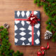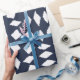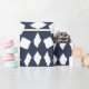 Modern Abstract Retro Navy Blue Chequered Pattern Wrapping Paper