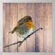 Modern abstract Robin bird on rustic barn wood Poster