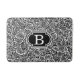 Retro modern bath mat with a custom monogram in a semi-abstract, all over pattern of roses and buds - mixed media digital art in classic black and white