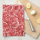 Modern Abstract Rose Pattern, Dark Red and White Tea Towel