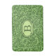 Retro modern bath mat with a custom monogram in a semi-abstract, all over pattern of roses and buds - mixed media digital art in light lime / chartreuse green and deep pine green