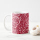 Retro modern coffee mug in a semi-abstract, all over pattern of roses and buds - mixed media digital art in deep rose red and pale pink