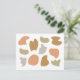 Modern abstract shapes postcard. The shapes are burnt orange, olive green, pink, and grey.