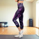 Dark swirling tones of purple stand out in this bold modern abstract design with these Capri leggings for any workout clothing wardrobe.