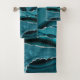 Modern Abstract Teal Blue Agate Silver Glitter Bath Towel Set