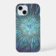 Modern Abstract Trendy Blue Flower Fractal Art iPhone 15 Case