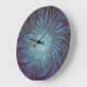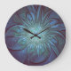 Modern Abstract Trendy Blue Flower Fractal Art Large Clock
