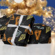 Cute modern hand illustration abstract triangles in grey yellow and orange on black background. Cool halloween abstract pattern