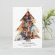 Modern abstract Triangles photos christmas tree and Christmas saying pattern with joy, love, believe, peace, falalala navy blue text pattern with snowflake and mistletoe. All the colours are editable.