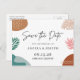Modern Abstract Tropical Wedding Save the Date Postcard.