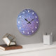 Modern abstract wall clocks with beautiful modern abstract design on the clock face in this decorative wall decor clock for your kitchen, bathroom, or any room in your house you want to add some colour and character. Colours include purple, pink and blue.
