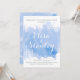 Modern abstract watercolor splash blue winter wedding rehearsal dinner invitation featuring a hand painted watercolor paint splash with texture in tones of blue, trees in white with snow, snowflakes and text in white and grey. This elegant and stylish casual wedding invitation is a completely customisable template perfect for your winter wedding. Note that this is only an image of watercolor and not real texture. For best results choose felt or other paper.