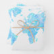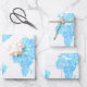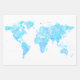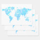 This modern abstract of the world map has a beautiful flow of different shades of blue watercolors with a speckled texture.