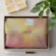 A contemporary modern abstract painting in warm colours. Yellow ochre, pink, burnt orange and cream. Original art by Nic Squirrell.