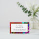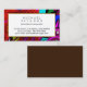 front-side: your name and address (or any other additional information) and custom profession... colourful art-inspired frame at the background... back-side: solid black... a modern visual concept