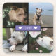 Modern design with 4 photos in a grid with centre text template in purple box "love" with hearts paper coaster.