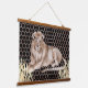 Modern African lion hanging tapestry. Beautiful watercolor of an African lion relaxing amongst foliage. Black and gold style pattern in the background gives it a modern touch.