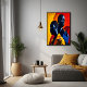 This AI-generated abstract art piece Glossy poster print beautifully combines Afrocentric themes with bold, geometric designs and vibrant colour palettes. Featuring two figures in striking hues of gold, red, and blue, the artwork celebrates identity, unity, and cultural expression. The dynamic composition is a visual symphony of light and shadow, evoking a sense of strength, elegance, and modernity. The artwork’s sleek and minimalist aesthetic makes it perfect for contemporary spaces, from living rooms and offices to creative studios. It is also a meaningful choice for occasions like housewarmings, anniversaries, and special milestones, offering a touch of cultural sophistication and artistic innovation.